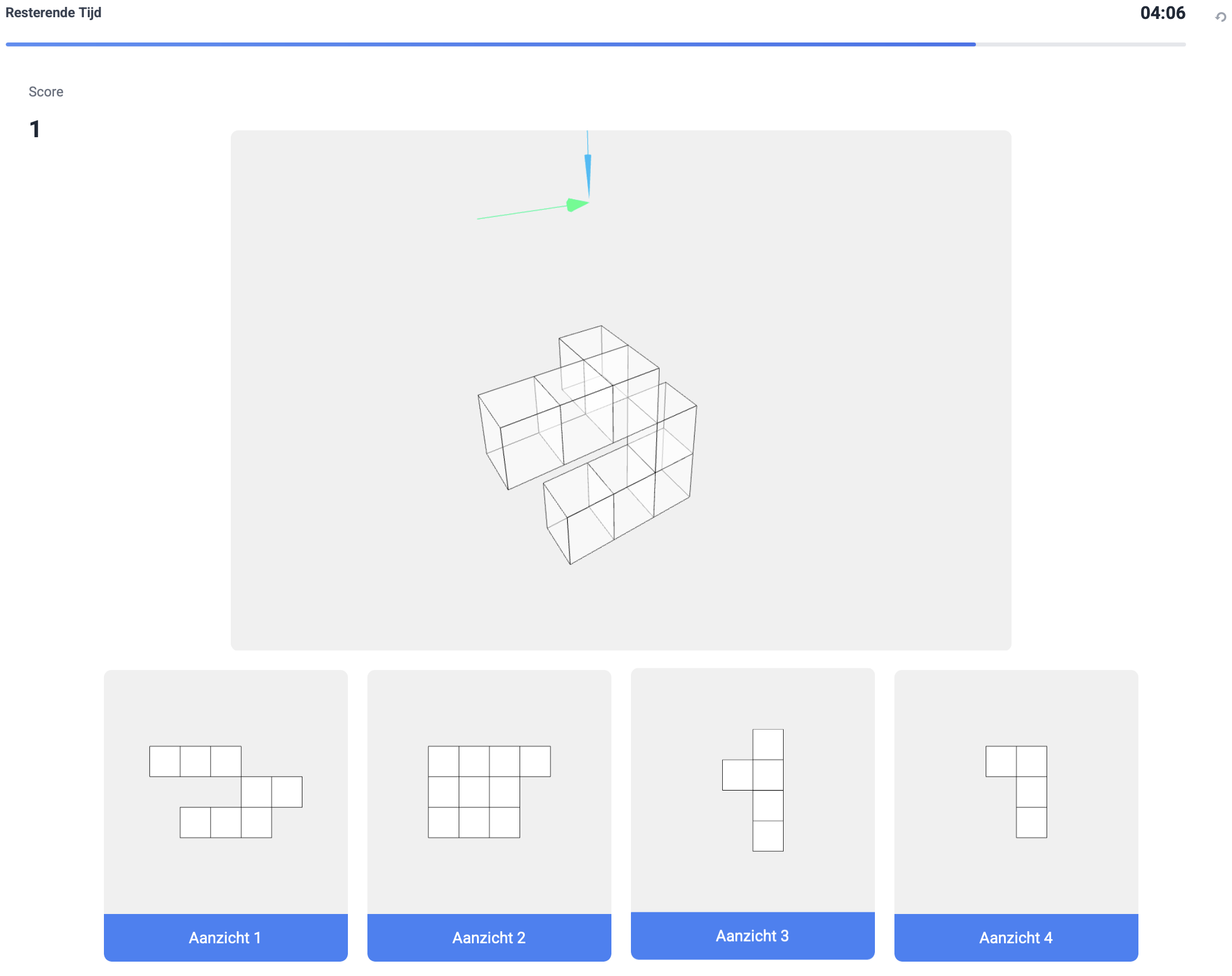 Door regelmatig met dergelijke ruimtelijke vraagstukken te oefenen, ontwikkel je een essentiële cognitieve vaardigheid die direct relevant is voor het succesvol opereren als piloot in complexe driedimensionale omgevingen. Na afloop van elke oefensessie kun je de gegeven antwoorden opnieuw bekijken. Ditmaal is het mogelijk om de constructie met je muis vast te houden en naar alle kanten te slepen.